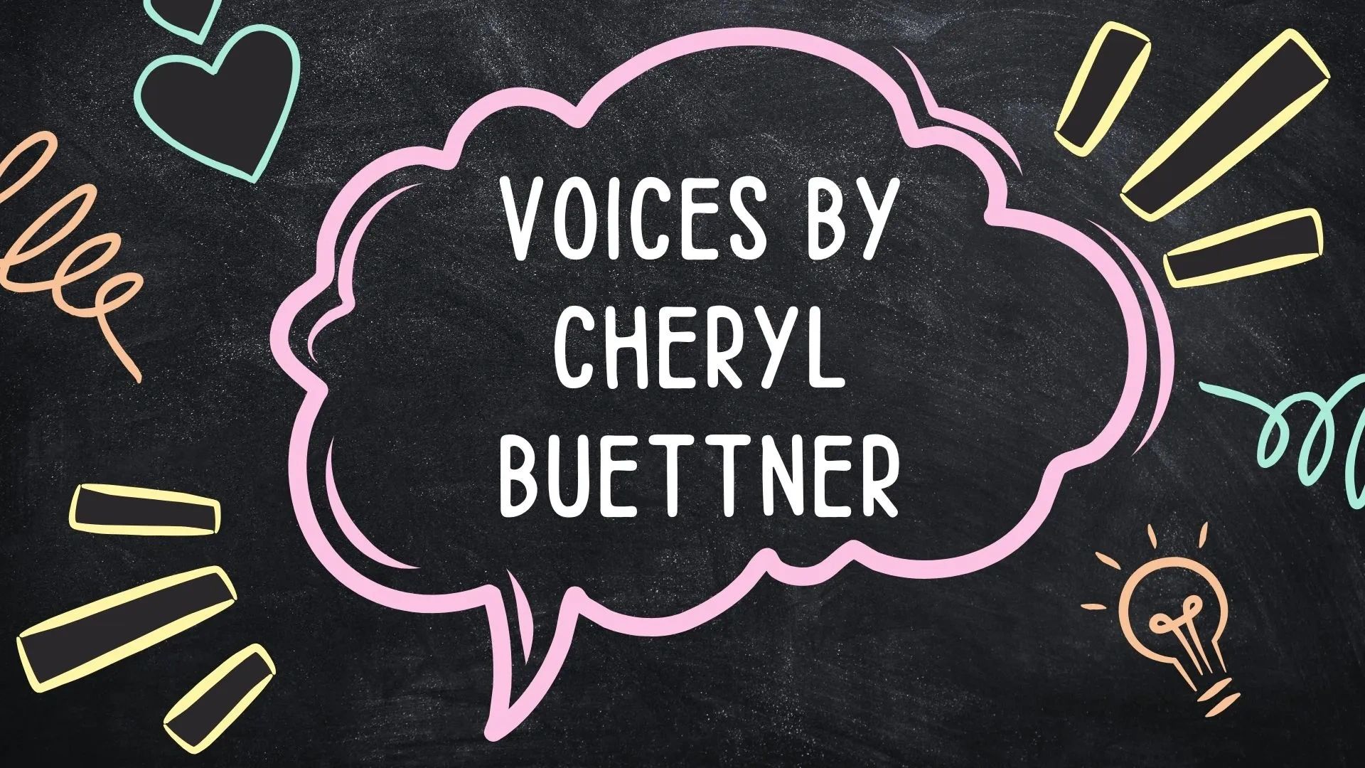 At Voices by Cheryl Buettner, you will experience a unique blend of multi-faceted voice talents. Cheryl has worn many hats. Middle school teacher. Biomedical research scientist. Musical theater nerd. Animal rescue volunteer. Science fiction/fantasy enthusiast. Dysfunctional mom of three.